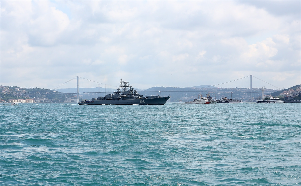 Karadeniz'den gelen Rus donanmasına ait 868 borda numaralı savaş gemisi, Sarayburnu önünden Marmara Denizi'ne girdi.