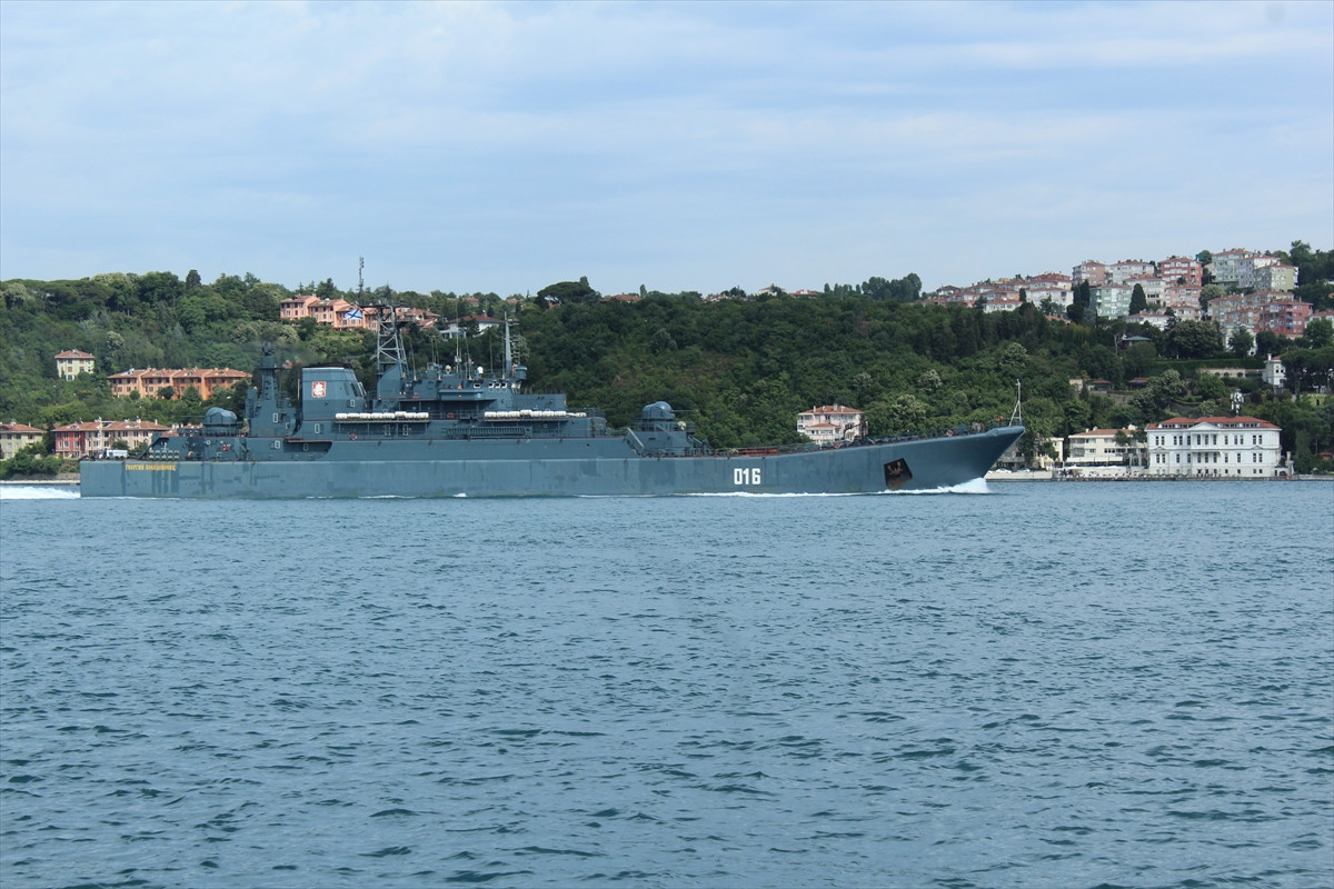 Rus ordusunun Karadeniz filosuna ait olduğu öğrenilen 016 numaralı savaş gemisi, Karadeniz'den İstanbul Boğazı'na girdi.