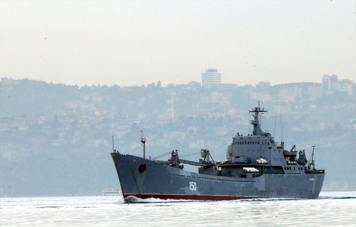 Donanmanın Karadeniz Filosu'na bağlı "Aligator" sınıfı "150" borda numaralı çıkarma gemisi, Marmara Denizi'nden İstanbul Boğazı'na girdi. Gemiye boğazı geçişi sırasında sahil güvenlik ekipleri ve deniz polisi ile polis helikopteri eşlik etti. Polis ekiplerinin, geminin geçiş güzergahındaki bazı bölgelerde kıyıda beklemesi dikkati çekti.