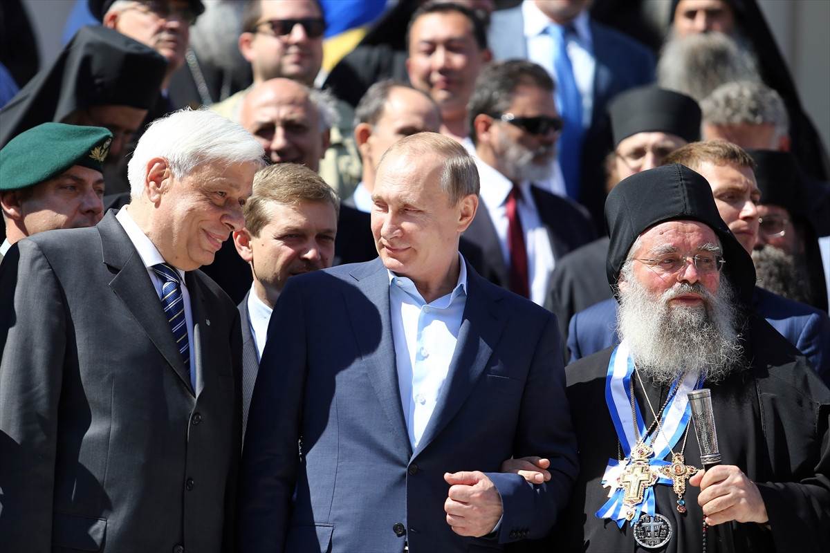 Putin daha sonra yoğun güvenlik önlemleri altında bölgenin merkezi Kayres'e geldi. Burada bölgenin en eski kilisesi Protaton'da bir ayine katılmasının ardından, Yunanistan Cumhurbaşkanı Prokopis Pavlopulos ile bir araya geldi.