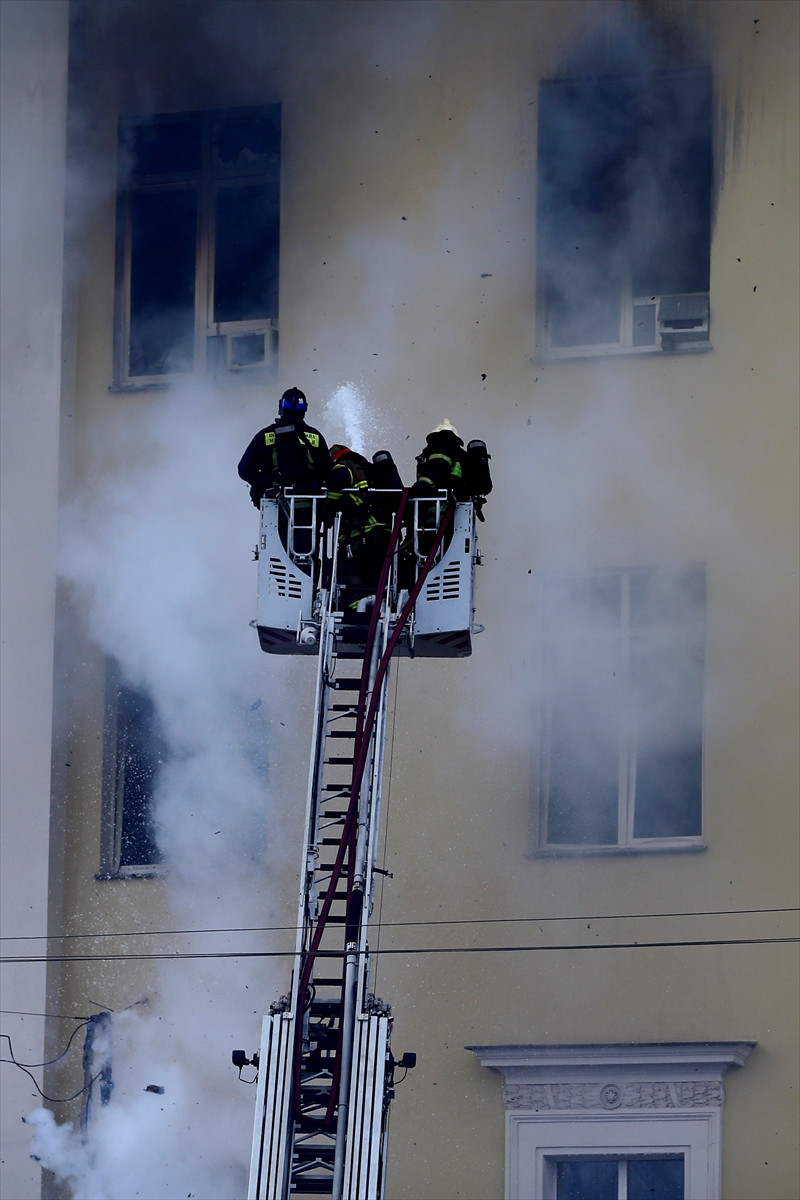 Rus basınında yer alan haberlerde yangında en az bir kişinin yaralandığı belirtiliyor. Yangın söndürme çalışmaları devam ediyor.