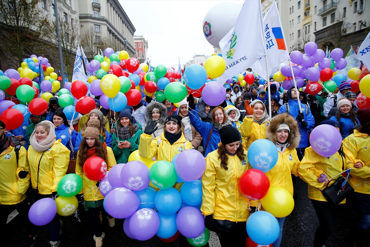 Moskova'da yaşayan Türkler de ellerinde bayraklarla kutlamalara katılırken, yürüyüşte dev Türk bayrağı açıldı. Yürüyüş, Manej Meydanı'nda, ünlü Rus ses sanatçılarının "Biz biriz" konseriyle sona erdi.