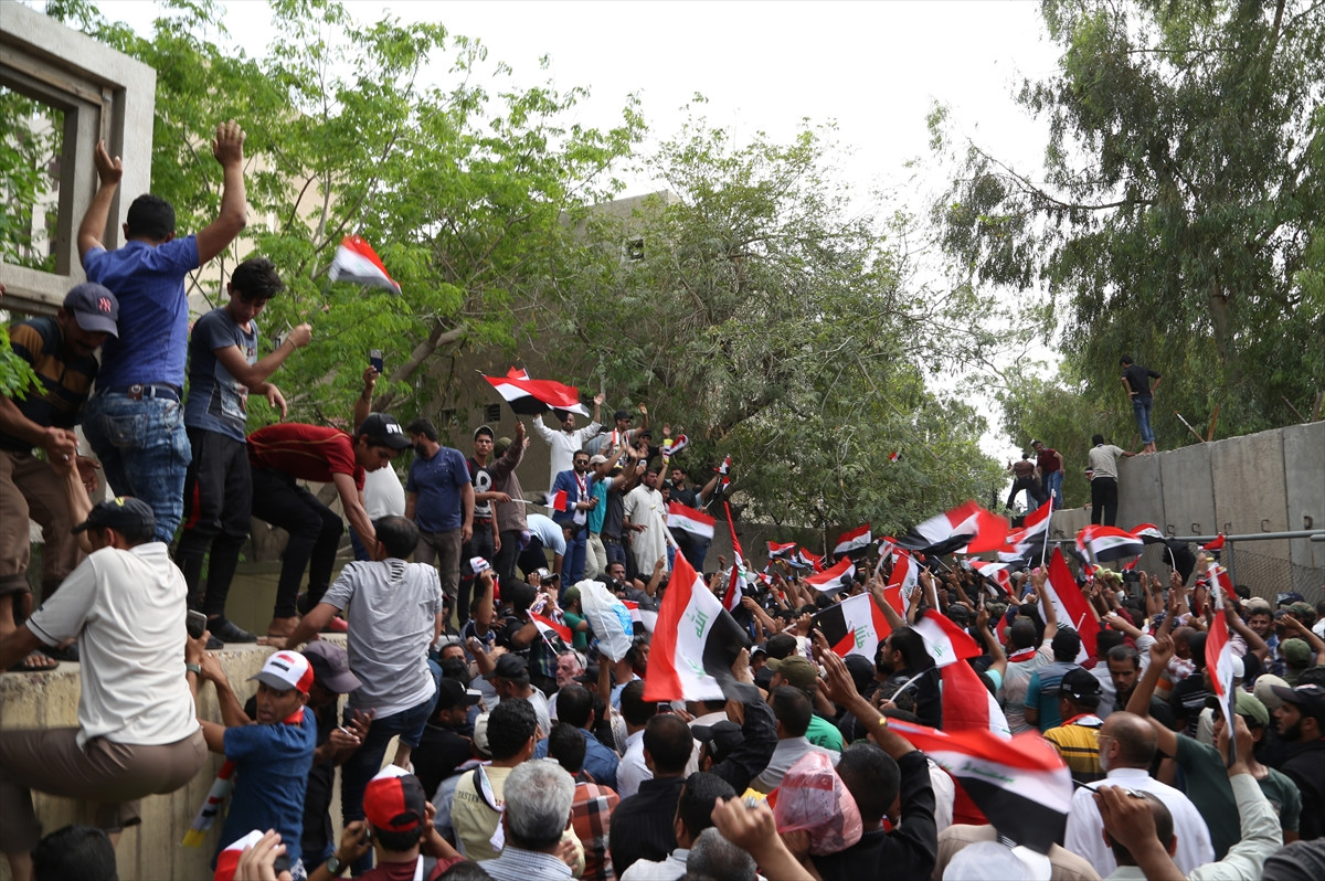 BAĞDAT (AA) - Irak'ta Şii lider Mukteda es-Sadr yanlısı çok sayıda gösterici, hükümet binalarının bulunduğu korunaklı Yeşil Bölge'yi ihlal ederek, parlamento binasına girdi.