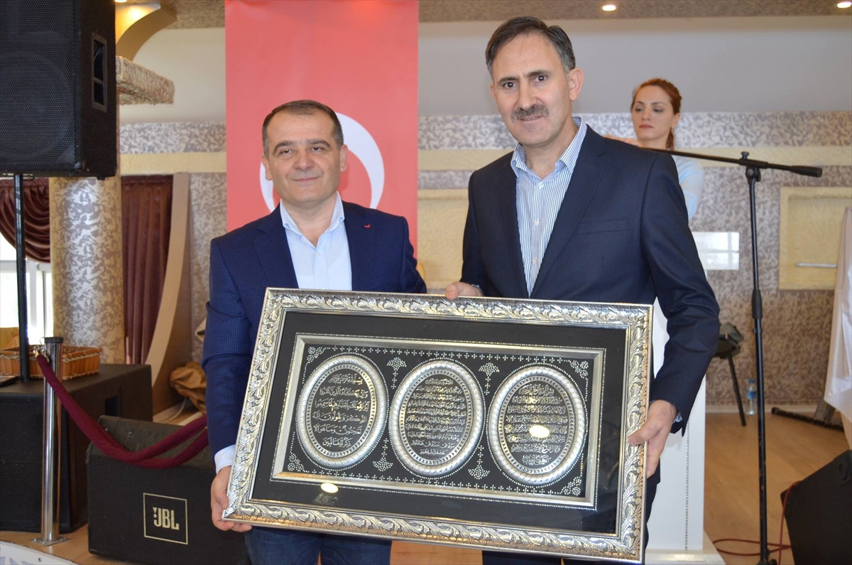 Konuşmaların ardından Memur-Sen İl Temsilcisi Kamuran Aşkar, Durmuş'a hediye takdim etti.