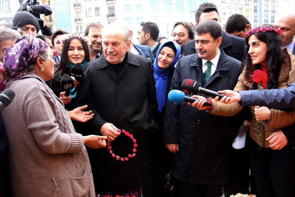 Vali Şahin, Kadir Topbaş ve Demircan, Taksim Meydanı'nda çiçekçilerle de bir süre sohbet etti. Plastik çiçekten yapılmış taç satmalarına izin verilmediğini ifade eden çiçekçiler, Demircan ve Topbaş'tan bu konuda izin istedi. Demircan, işporta olarak satış yapmamaları halinde çiçekçilere müsaade edebileceklerini dile getirdi.