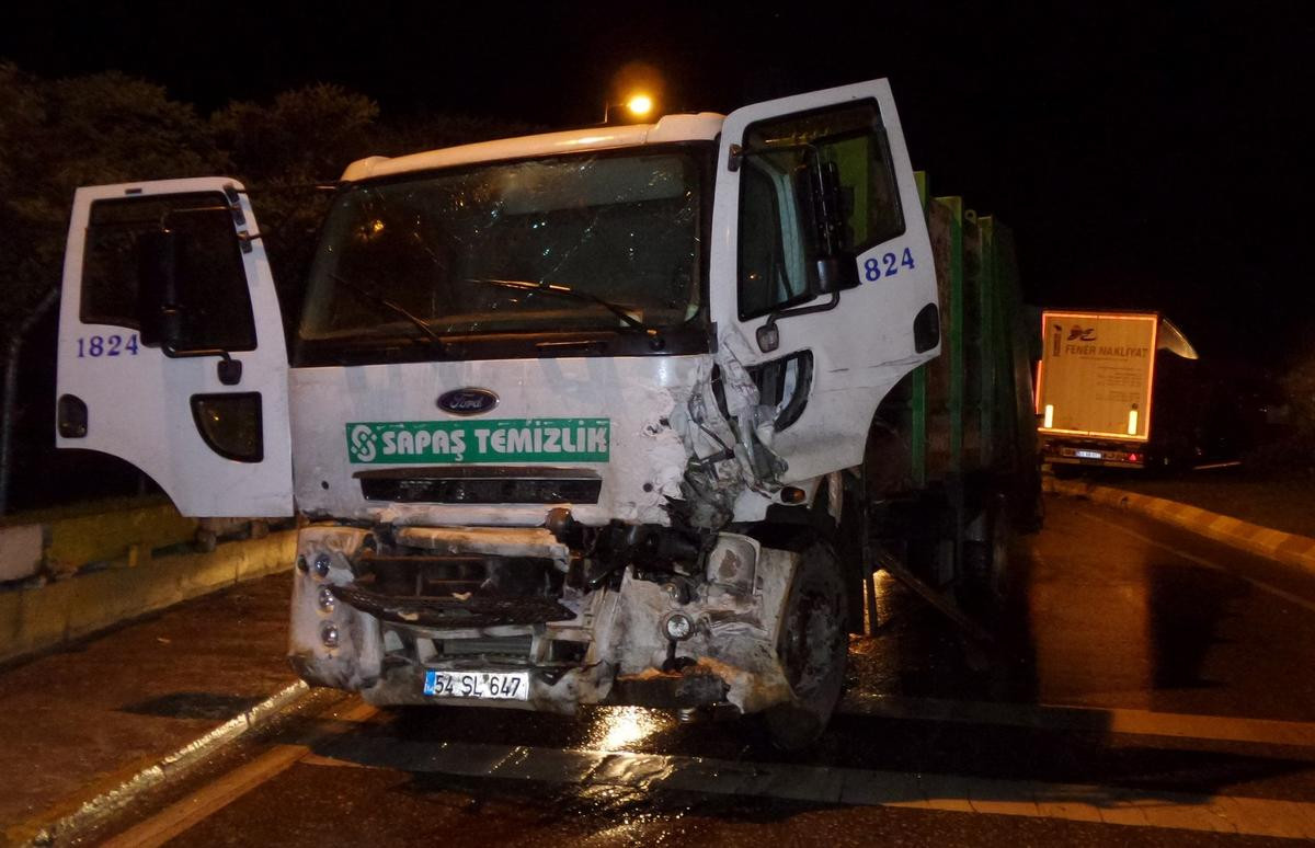 Alınan bilgiye göre, Eyüp Ercan Baş (44) idaresindeki 53 AB 576 plakalı tır, TEM otoyolu Sapanca gişeleri çıkışında İsa Güneşli'nin (33) kullandığı Sapanca Belediyesine ait 54 SL 647 plakalı çöp kamyonuyla çarpıştı.