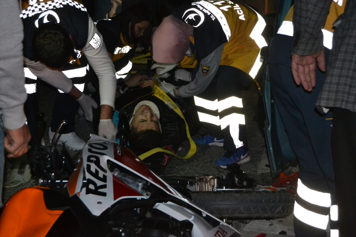Kazada, otomobil sürücüsü ve aynı araçta bulunan Filiz Yalvaç ile motosiklet sürücüsü Bozan ve ismi belirlemeyen bir kişi yaralandı.