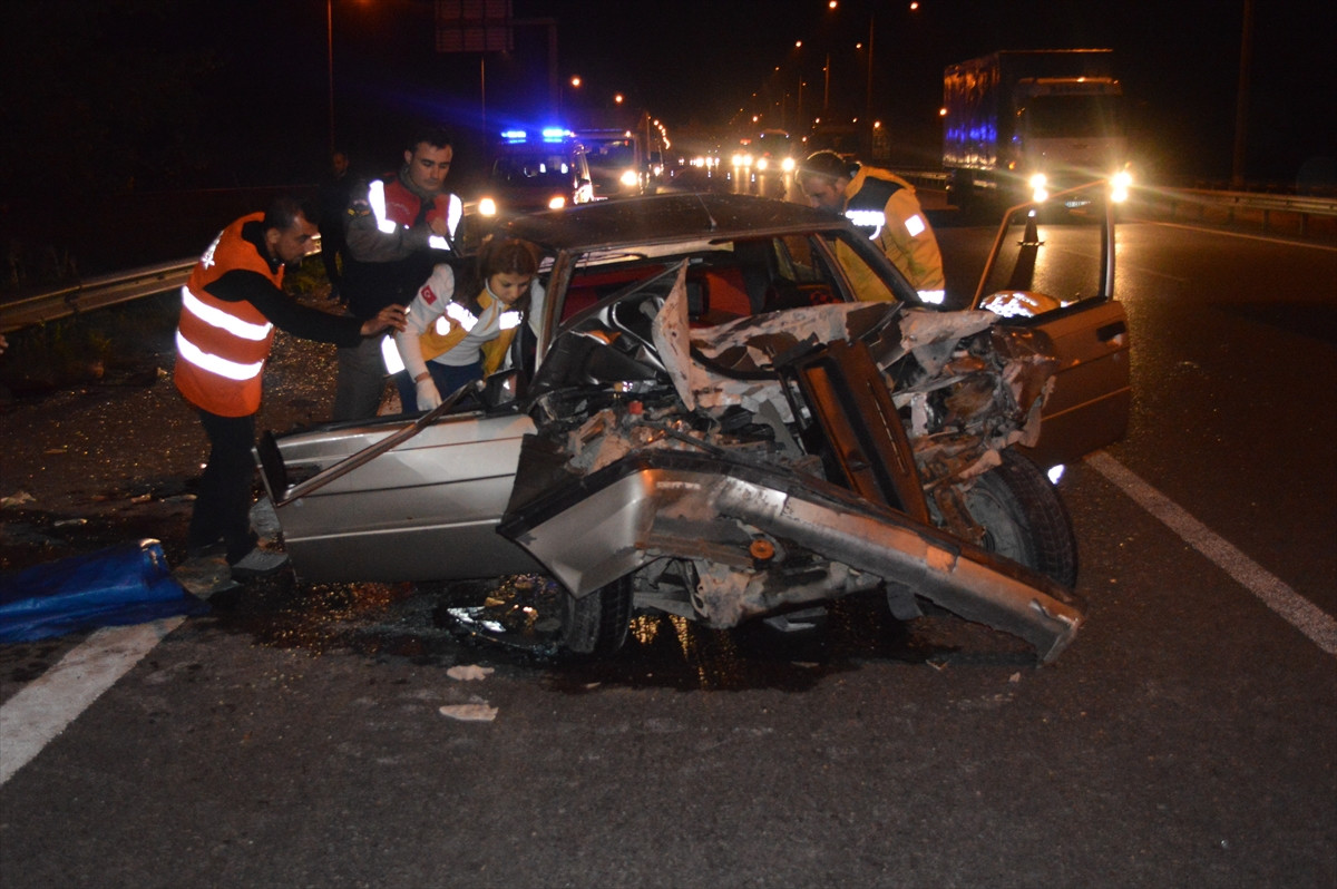 Alınan bilgiye göre, Ankara yönüne giden Mehmet Yılmaz idaresindeki 81 AU 820 plakalı otomobil, TEM Otoyolu Hendek Gişeleri mevkisinde Murat Aydın'ın kullandığı karayollarına ait 34 BU 5303 plakalı hafif ticari araca arkasından çarptı.