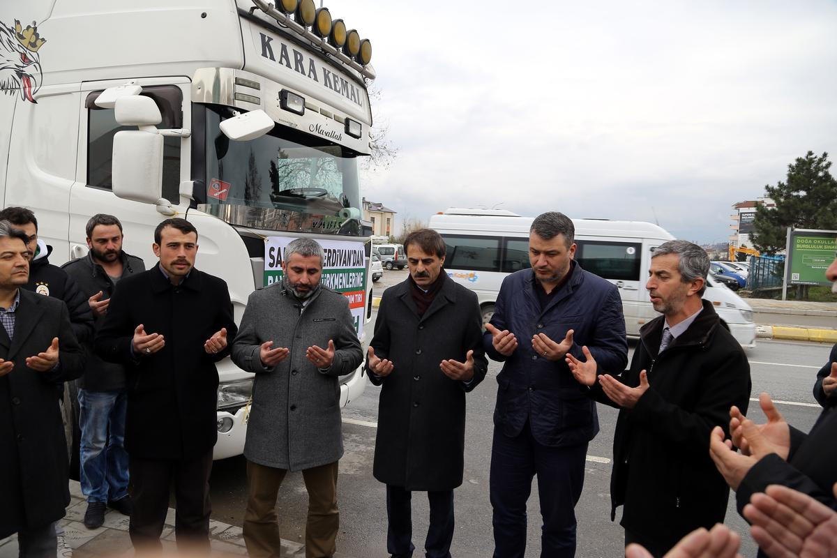 Serdivan Belediyesi önünde düzenlenen törende konuşan Belediye Başkanı Yusuf Alemdar, yardımların bir an önce bölgeye ulaştırılması için gayret gösterdiklerini söyledi.