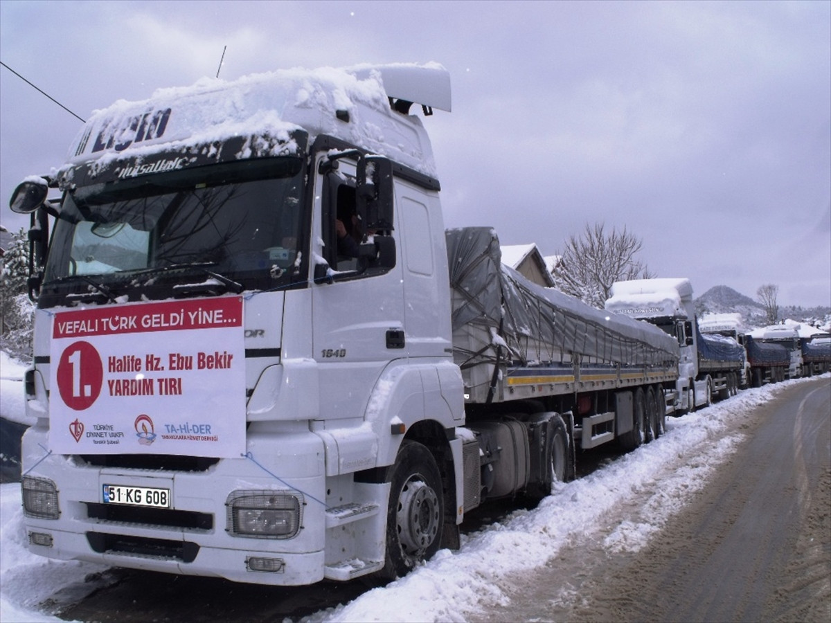 Daha sonra unların yüklendiği 5 tır, dualar eşliğinde Haleplilere ulaştırılmak üzere yola çıktı.