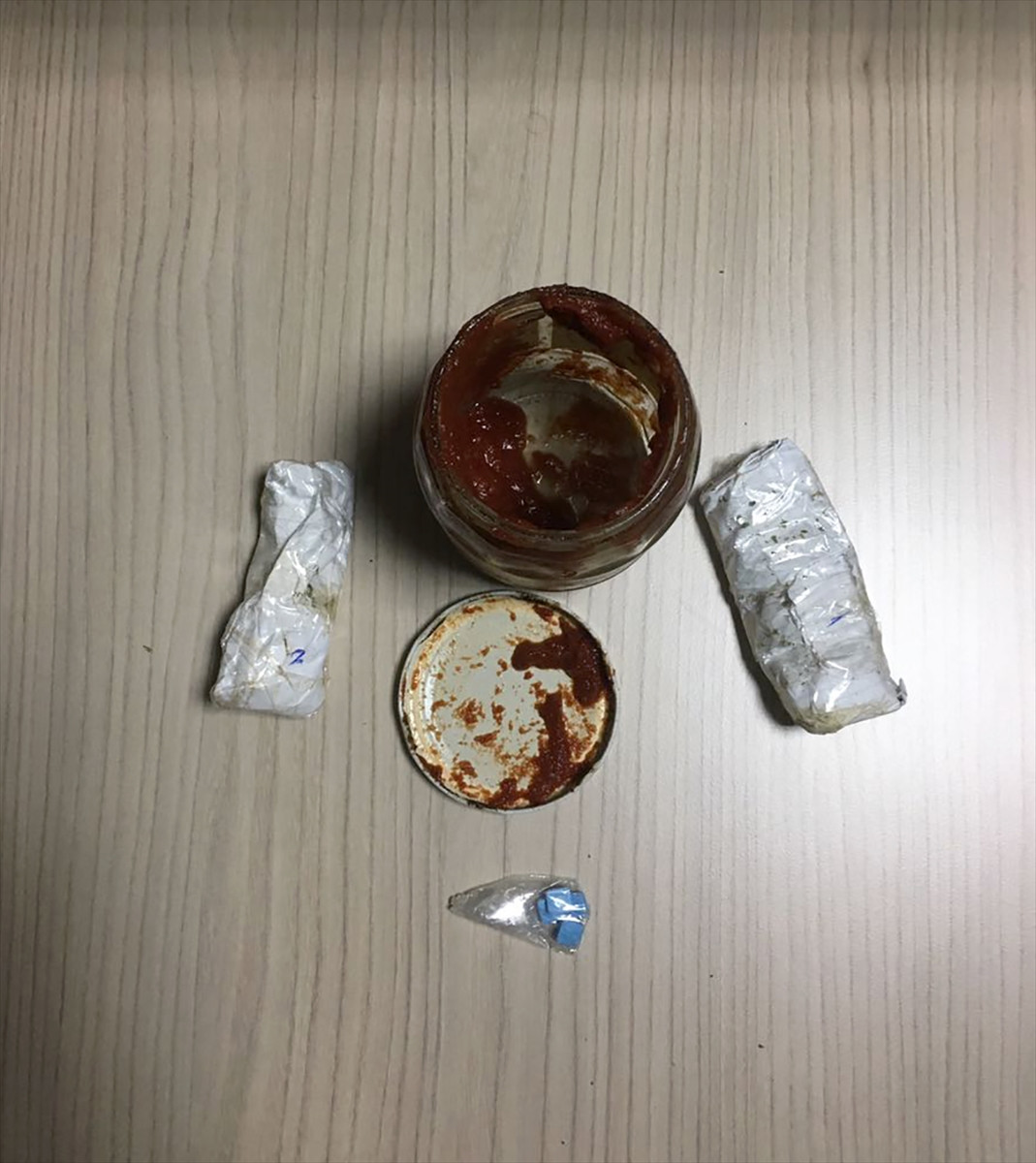 Teknik ve fiziki takip sonucu zanlıların salça kavanozunda esrar ve uyuşturucu hap taşıdıklarını belirleyen ekipler, Medrese Mahallesi'nde şüphelileri yakaladı. C.Y. ve T.S'nin taşıdığı kavanozlardaki salçayı boşaltan ekipler, satışa hazır 400 gram esrar ve 4 uyuşturucu hap buldu.