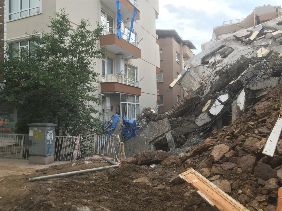 Alınan bilgiye göre, İstasyon Mahallesi Saadet Caddesi üzerindeki 5 katlı binanın iş makinesiyle yıkımı sırasında üst katlardaki bir bölümde çökme meydana geldi.