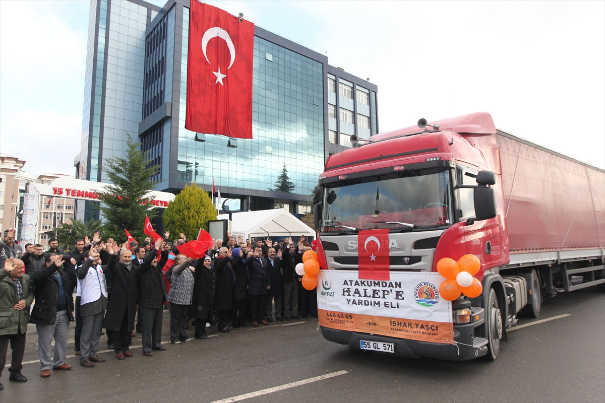 SAMSUN (AA) - Samsun'da, Atakum Belediyesi ile Hayrat Vakfı Samsun Temsilciliği tarafından Halep için toplanan yardım malzemeleri, bölgeye gönderildi.