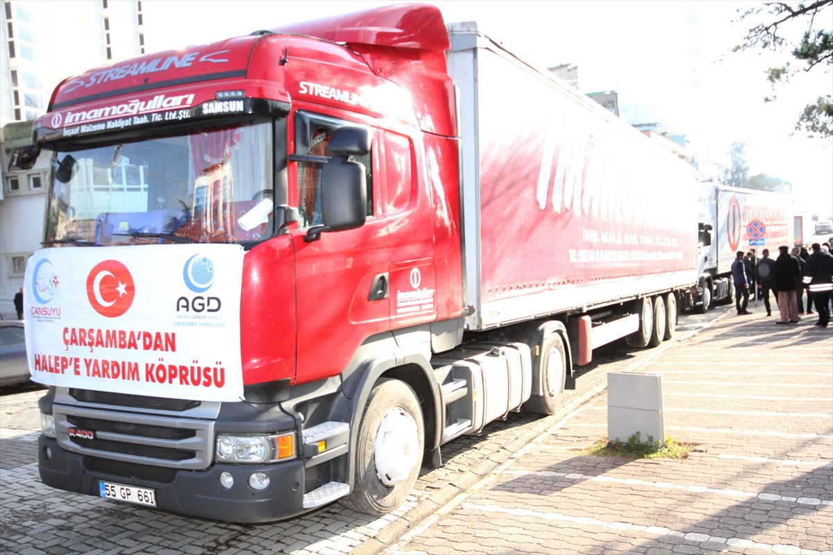 Anadolu Gençlik Derneği ile Cansuyu Yardımlaşma ve Dayanışma Derneği Çarşamba şubelerince Halep için düzenlenen yardım kampanyasında toplanan unların gönderilmesi amacıyla Belediye Meydanı'nda tören düzenlendi.