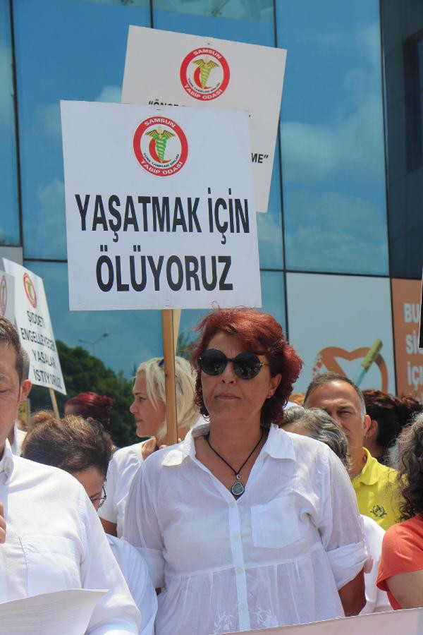 Samsun'da görev yapan sağlık çalışanları, meslektaşlarına yönelik şiddeti protesto için Eğitim ve Araştırma Hastanesi önünde toplandı. Şanlıurfa'da Harran Üniversitesi Tıp Fakültesi Hastanesi Çocuk Acil Servisi'nde görevli Dr. Bahattin Ahmet Yalçın'a yönelik saldırıyı protesto eden grup, şiddetin sona ermesini istedi. Grup adına basın açıklaması yapan Samsun Tabip Odası Başkanı Dr. Murat Erkan şöyle dedi: