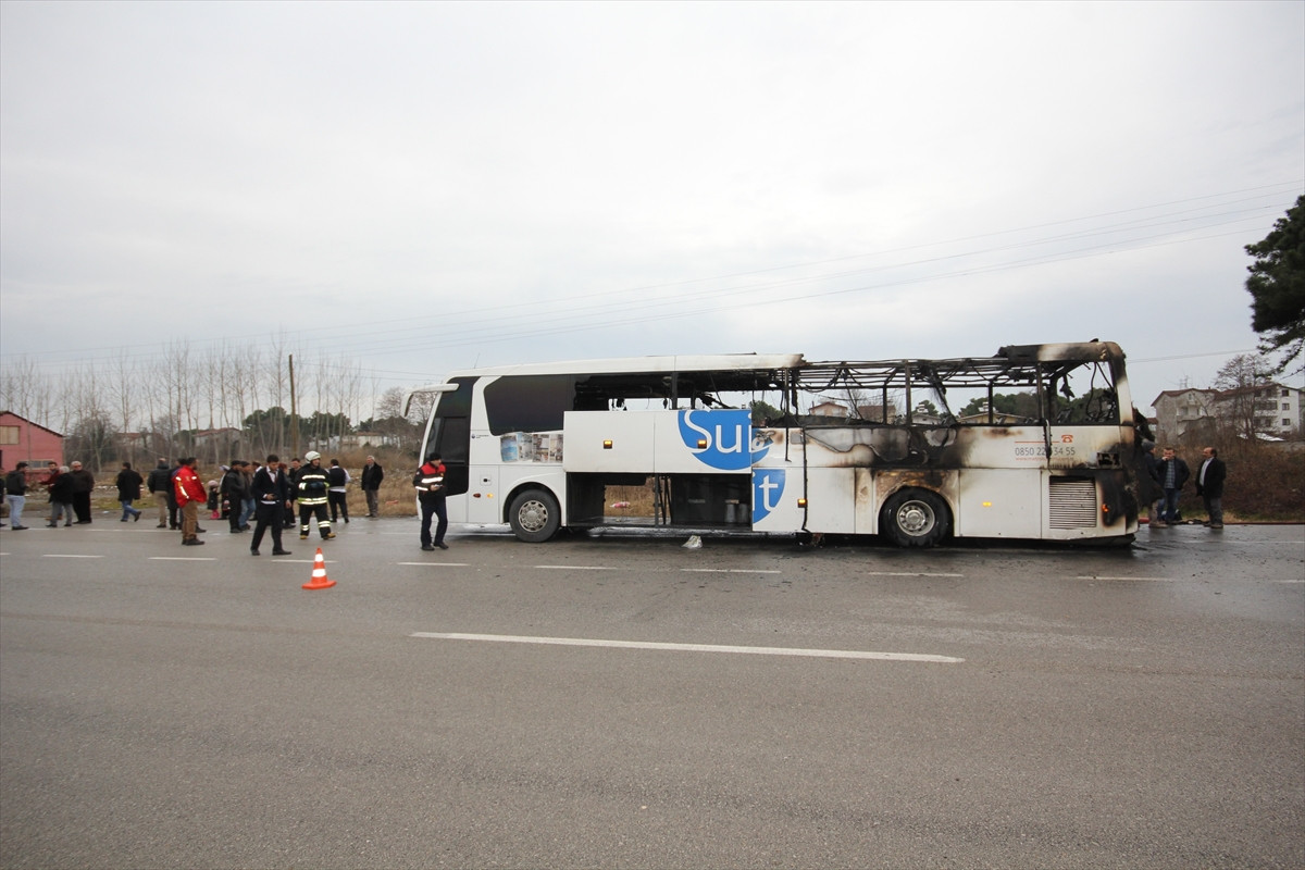 Trabzon'dan Fethiye'ye giden İbrahim Durak idaresindeki 34 YK 0094 plakalı yolcu otobüsünün motor bölümü, Samsun'un Terme ilçesi Sakarlı Mahallesi mevkisinde alev aldı. Dumanı fark eden şoför, otobüsü yol kenarında durdurdu. Otobüsteki 16 yolcu tahliye edildikten sonra araçta bulunan yangın tüpleriyle alevlere müdahale edilmeye çalışıldı. Alevlerin otobüsü sarması üzerine durum itfaiyeye bildirildi. Samsun Büyükşehir Belediyesi itfaiye ekiplerinin müdahale ettiği yangın, söndürüldü. Yangın sonucu otobüs, kullanılamaz hale geldi. Yolcular ise firma tarafından tahsis edilen başka bir otobüsle yollarına devam etti.
