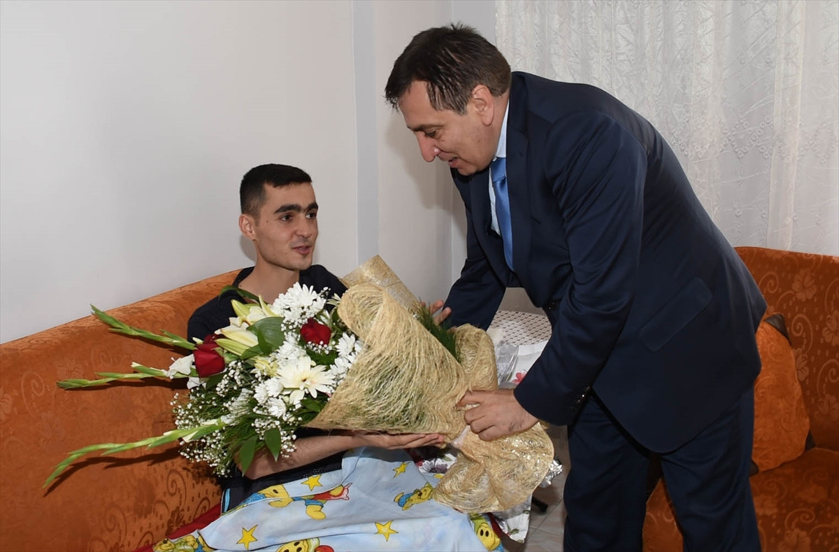Valilikten yapılan açıklamaya göre, Vali Küçük, beraberindeki 20. Zırhlı Tugay Komutanı Tuğgeneral Metin Alpcan, Aile ve Sosyal Politikalar İl Müdürü Murat Demirkol, Şehit Aileleri Derneği Başkanı Mehmet Yavuz ile birlikte Beşkat'ı Karaköprü ilçesindeki evinde ziyaret etti ve geçmiş olsun dileğinde bulundu.