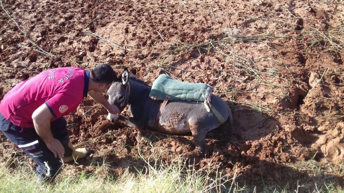 ŞANLIURFA (AA) - Şanlıurfa'da bataklığa saplanan eşek, itfaiye ekiplerinin yaklaşık bir saatlik çalışmasıyla kurtarıldı.