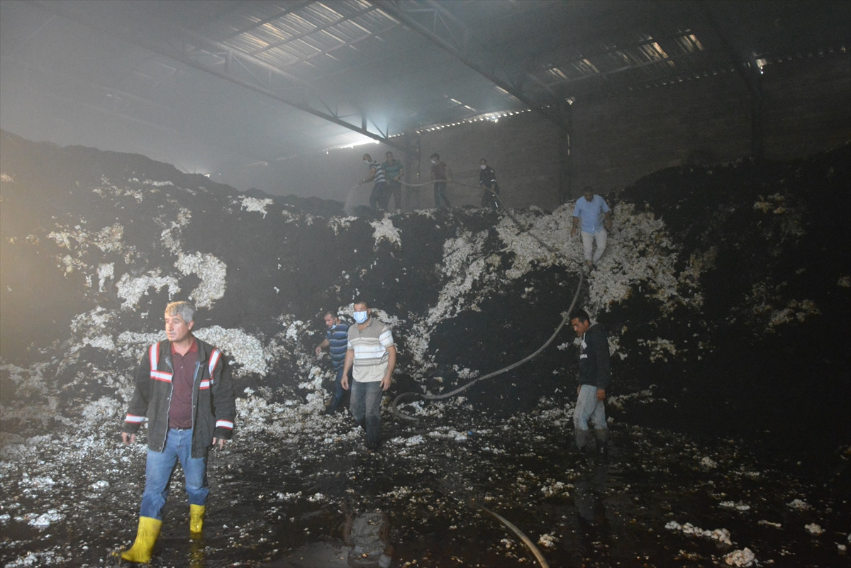 Yangında yüzlerce ton pamuk zarar gördü.