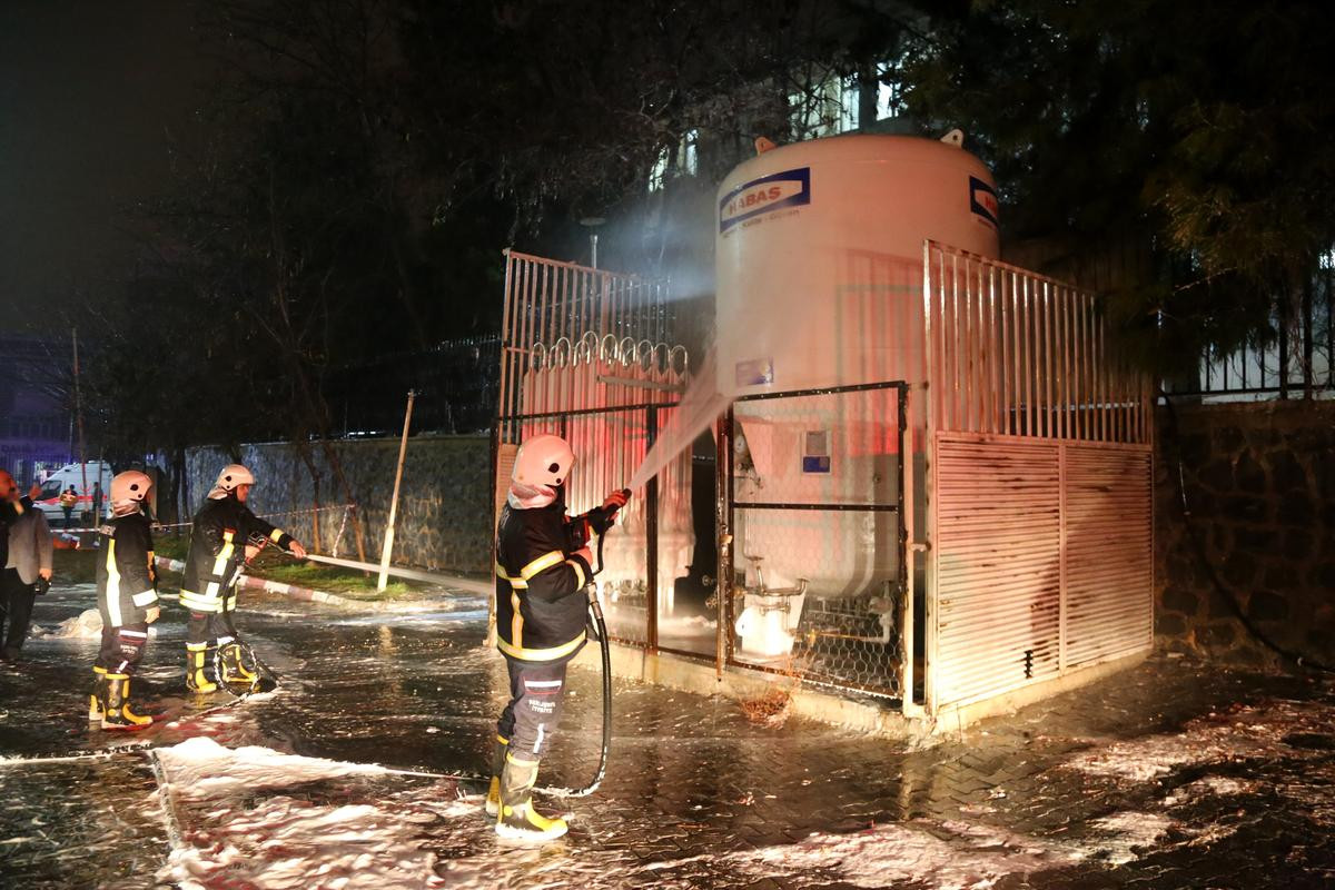 Yangının kısa sürede kontrol altına alınarak söndürüldüğünü anlatan Şeyhanlı, "Yangın anında diğer oksijen sistemimiz devreye girerek hastanemizin tüm tedavisi aynen devam etmektedir. Hastanemizde yatan bütün hastalarımızın can güvenliği ve tedavisiyle ilgili herhangi bir sorun yok" diye konuştu.