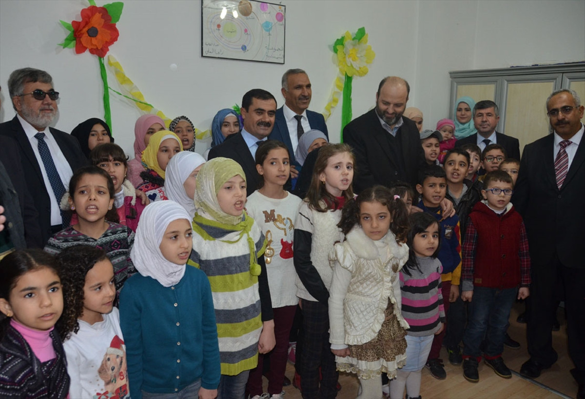 İlci ve diğer yetkililer, yaklaşık 700 sığınmacının eğitim alacağı, çoğunluğu Suriyeli 40 öğretmenin görev yapacağı 4 katlı okulun açılış töreninde kurdele kesti.