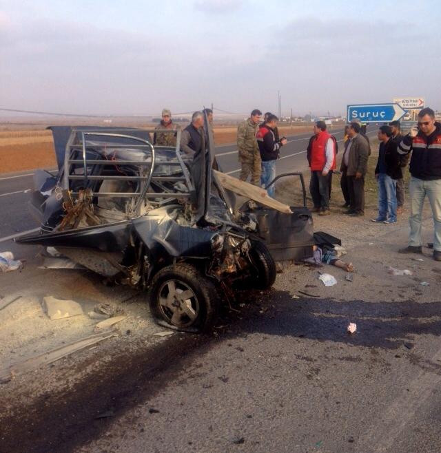 Alınan bilgiye göre, Cuma Arslan yönetimindeki 63 ZF 727 plakalı kamyon, Şanlıurfa-Gaziantep karayolu Suruç kavşağında, Mustafa Dokumacı'nın (50) kullandığı 38 RC 672 plakalı otomobille çarpıştı.