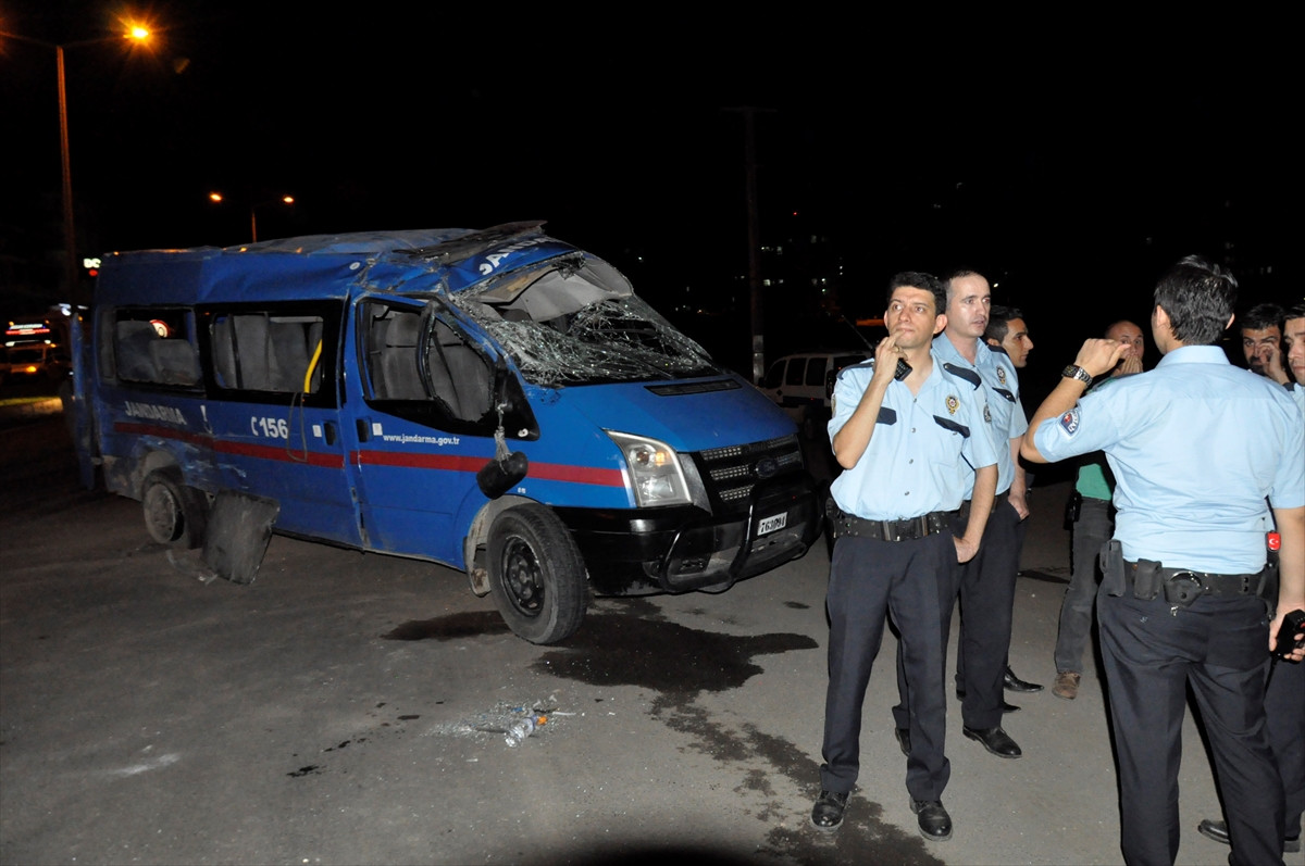 Alınan bilgiye göre, jandarmaya ait minibüsün sürücüsünün, Siverek Şehirlerarası Otobüs Terminali civarında, Şanlıurfa istikametinden gelen 18 AZ 149 plakalı minibüsle çarpışmamak için manevra yaptığı sırada takla attı. Sivil araç ise kavşaktaki reklam direğine çarparak durabildi.