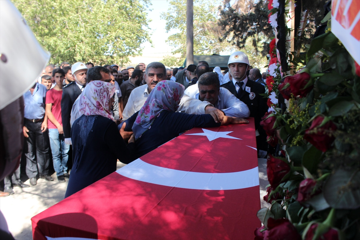 KİLİS (AA) - Şanlıurfa Şehirlerarası Otobüs Terminali'nde çıkan çatışmada şehit olan polis memuru Sinan Akdemir (27), memleketi Kilis'te toprağa verildi.