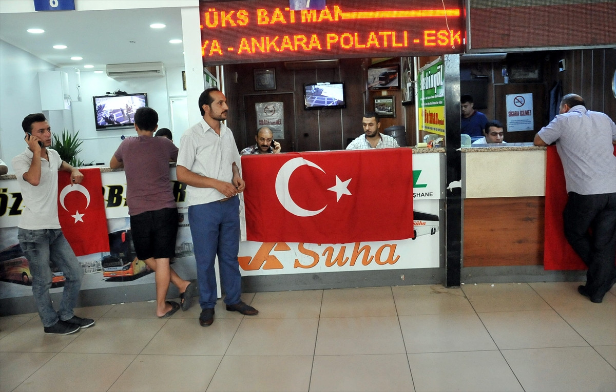 ŞANLIURFA (AA) - Şanlıurfa Şehirlerarası Otobüs Terminali'ndeki otobüs firması sahipleri, terminalde dün yaşanan ve 3 polisin şehit olmasına 3 polisin yaralanmasına neden olan olaya tepkilerini iş yerlerine Türk bayrağı asarak gösterdi.