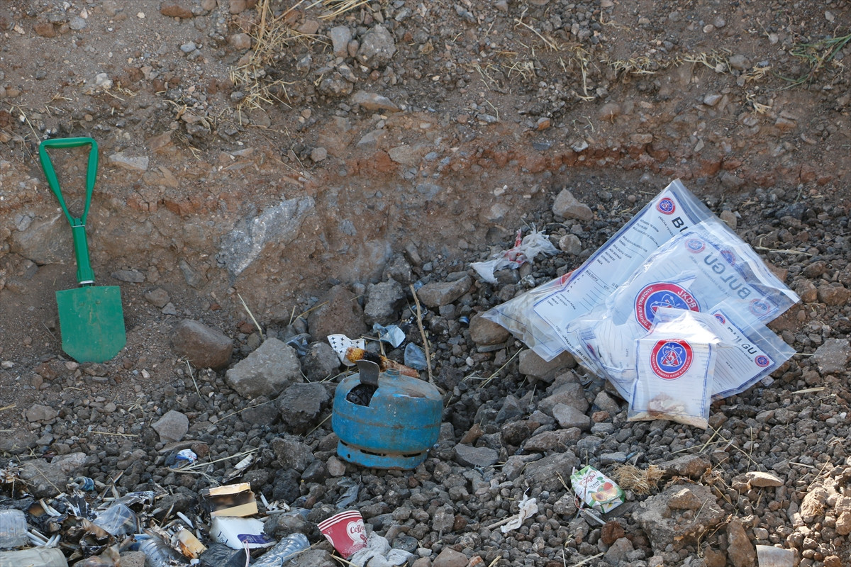 Mevzilerde ve mısır tarlasında ve bölgede eğitimli köpekler eşliğinde arama yapan ekipler, bir mevzide 2 piknik tüpü, değer mevzide bir piknik tüpü, yakınında ise teneke içerisinde patlayıcı ve metrelerce uzunlukta kablo tespit etti.