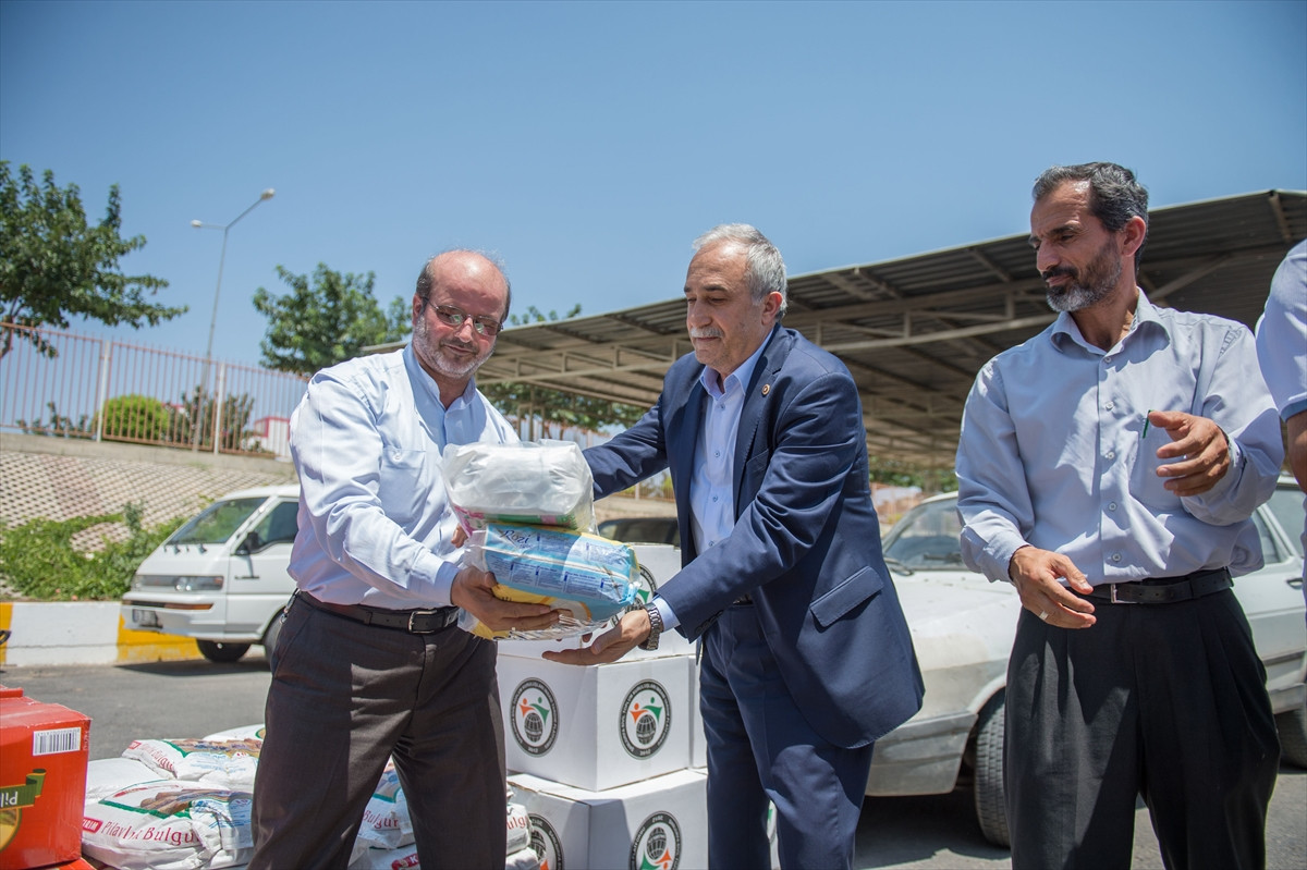 Programa katılan AK Parti Şanlıurfa Milletvekili Ahmet Eşref Fakıbaba, yardım malzemelerinin yüklenmesinde görevlilere yardım etti.