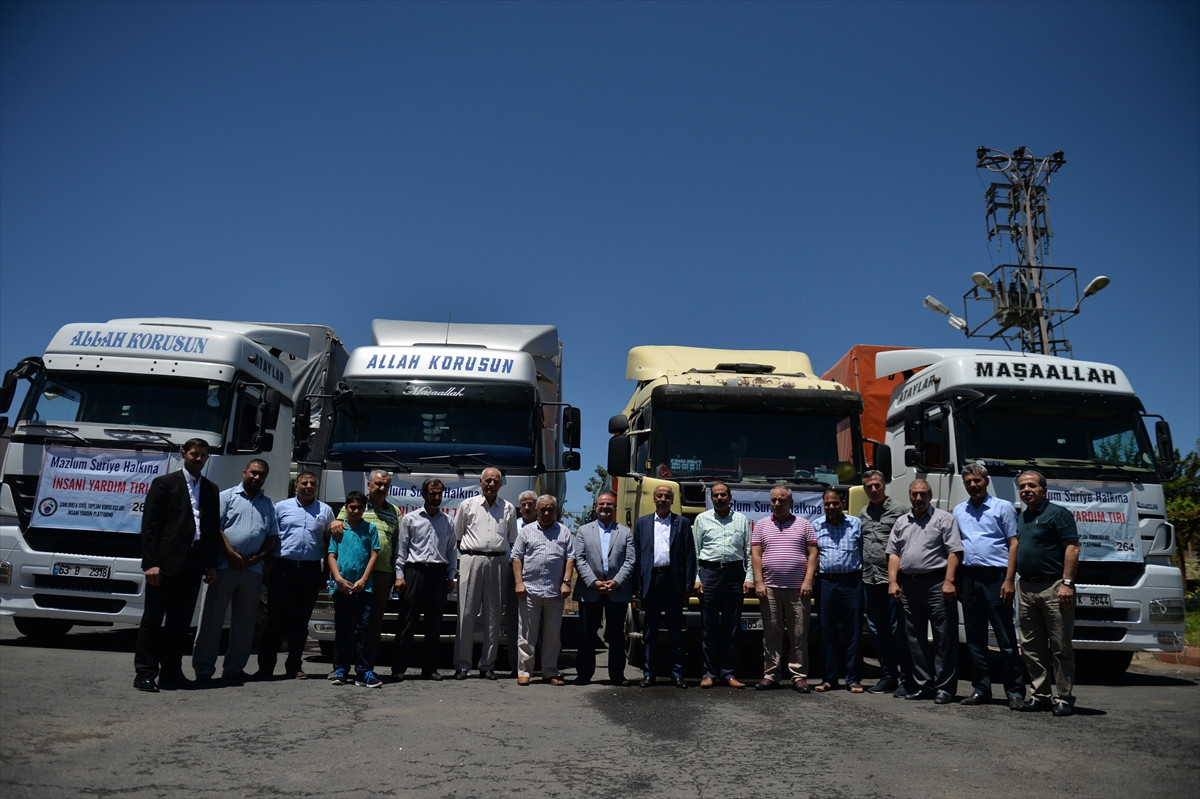 Konuşmaların ardından yardım malzemelerinin yüklendiği tırlar, Suriye'ye uğurlandı.