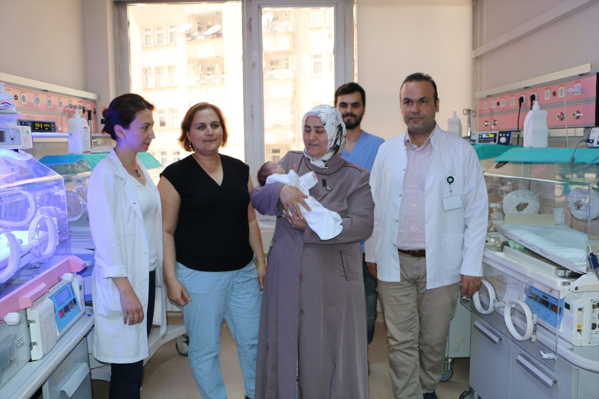 Şanlıurfa'da Sigorta Mahallesi'nde yaşayan Zeliha Ak, biri 19, diğeri 16 yaşında iki sağlıklı çocuğunun ardından hamile kaldığı 8 çocuğunu da kansızlık nedeniyle kucağına alamadan kaybetti. Son çocuğuna hamile kalan Ak, hamileliğinin 5'inci ayında Şanlıurfa Kadın Hastalıkları ve Doğum Hastanesinde yapılan muayenesinde, bebeğinde aynı hastalık tespit edildi. Yaklaşık 3 ay boyunca Dr. Mehmet Aytaç Yüksel tarafından takip edilen anne karnındaki bebeğe, aralıklarla 4 defa kan nakli yapıldı. Zeliha Ak, hamileliğinin 8'inci ayında "Ravza Gül" ismini verdikleri bebeği dünyaya getirdi. Bir kilo 700 gram doğan kız bebek, 15 gün boyunca doktor nezaretinde kuvözde kontrol altında tutuldu. Bu sürenin ardından 2 kilo 100 grama çıkan Ravza Gül'ün kontrollerinde herhangi bir sorunu bulunmayınca aileye teslim edildi. Şanlıurfa Kadın Hastalıkları ve Doğum Hastanesi Başhekimi Dr. Eyüp Şeyhanlı, gazetecilere yaptığı açıklamada, annenin daha önce 8 kez çocuğunu kaybettiğini ve kendilerine başvurması üzerine anne karnındaki bebekle ilgili tetkikler yaptıklarını söyledi. Yapılan araştırmada çocukta kan eksikliği bulunduğunu ve bunun devam etmesi halinde çocuğun hayatını kaybetmesi riski taşıdığını dile getiren Şeyhanlı, şöyle konuştu: "Doktor kontrolünde periyotlarla 4 defa kan nakli yapıldı. 34'üncü haftada çocuğumuzun sezaryen ile doğumu gerçekleşti. 15 gün boyunca bebek sıkı bir şekilde kontrol altında tutuldu. Bugün çok şükür bebeği ailesine sağlıklı bir şekilde teslim etmenin mutluluğunu yaşıyoruz. Doktor Aytaç Bey başta olmak üzere tüm ekibimize teşekkür ediyorum." Anne Ak ise 16 yıl sonra yeniden çocuğunu kucağına almanın mutluluğunu yaşadıklarını belirterek, doktorları Mehmet Aytaç ve ilgililere teşekkür etti. Baba Yahya Ak ise uzun bir aradan sonra baba olmanın çok güzel bir duygu olduğunu belirterek, teşekkür etti.