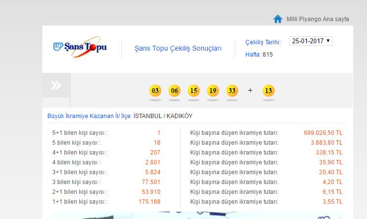 25 Ocak Şans Topu çekilişinde kazandıran rakamlar açıklandı. Şans Topu (5+1) oyunu, her Perşembe günü sabahından, Çarşamba günü 21:00'e kadar Sayısal Oyun bayilerinde bulunan oyun terminallerinden oynanabilir.