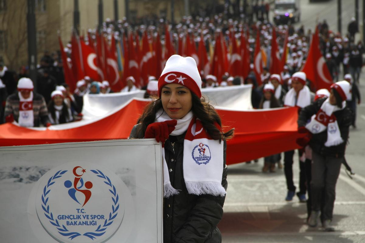 Ellerinde Türk bayraklarıyla tekbir getirip, "Şehitler ölmez vatan bölünmez" sloganları atan grup, "Vefakar gençlik fedakar ecdadını unutmayacak", "Ruhunuz şad olsun" yazılı pankartlarla Beydağı eteklerindeki karlı yolda 3 kilometre yürüdü.