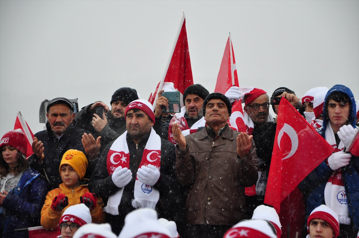 Soğuk hava nedeniyle katılımcılara çay servisinin yapıldığı etkinlik, şehitler için yapılan duanın ardından sona erdi.