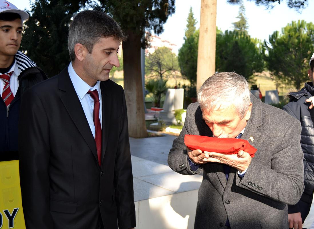 Gelibolu Askeri Şehitliği'nde düzenlenen tören, saygı duruşunda bulunulmasıyla başladı. Türk Kızılayı Gelibolu Şube Başkanı Fahrettin Öztürk, şehitlikten alınan toprak ile Türk bayrağını Mehmet Akif Ersoy Mesleki ve Teknik Lisesinde eğitim gören 8 öğrenci ile öğretmenler İlker Can ve Haydar Levent'e teslim etti.