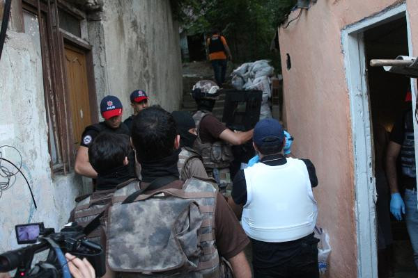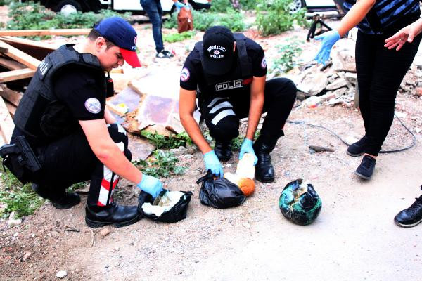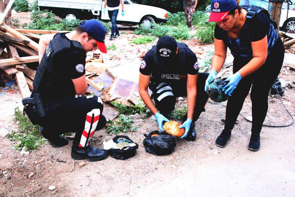 Ekiplerin yaptığı operasyonda daha önce yıkım kararı verilen ve Saide D.'ye ait olduğu iddia edilen evin etrafında yapılan aramalarda ekmek arasına, futbol topunun içine ve çocuk bezinin arasına zulalanmış uyuşturucu madde ele geçirildi.