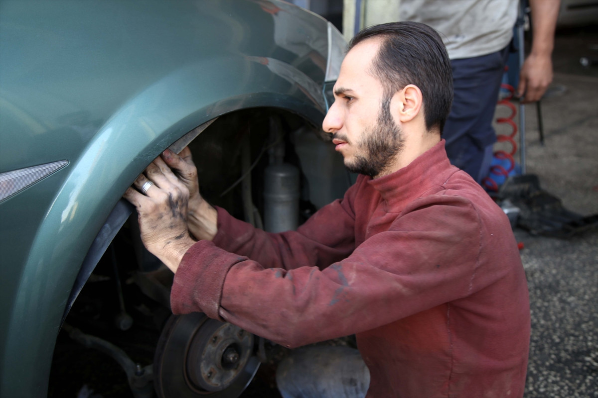 Suriye'nin Halep kentinden kaçarak kente bir yıl önce gelen Mohamed Berken (26) de Organize Sanayi Bölgesinde bir atölyede araç tamirciliği olan mesleğini devam ettiriyor.