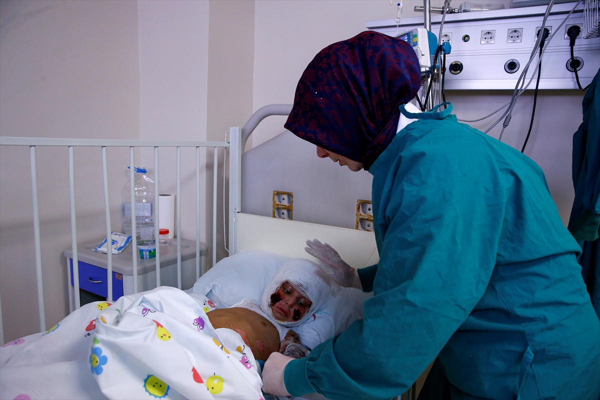 Hastanede Türkiye'nin tek çocuk yanık merkezi bulunduğuna işaret eden Doç. Dr. Şenel, çocuklardaki yanıklarının savaş nedeniyle barınma koşullarının kötü olmasından kaynaklandığına işaret etti. Şenel, "Bu çocuklar, savaş sonucu yaşanan nüfus hareketleriyle beraber muhtemelen çadırlarda yaşayan ve barınma şartları kötü olduğu için de bu kazalara maruz kalan çocuklar. Isınmak için mazotla soba yakıyorlar. Yakma işlemi sırasında alev alıyor ve çocuklar yanıyor. Özellikle yüz ve baş bölgeleri ile elleri tamamen yanıyor." dedi.
