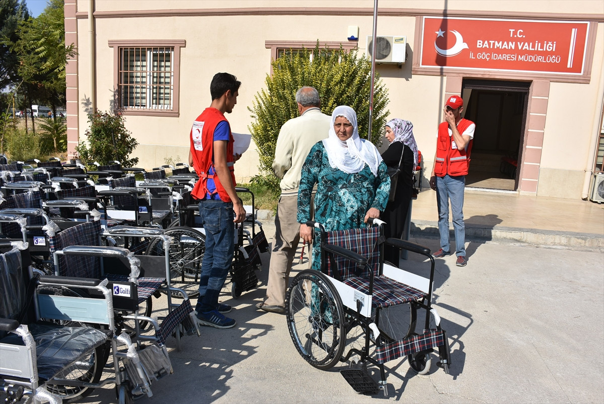 Ülkelerindeki iç savaştan kaçarak sığındıkları Türkiye'de Batman'a yerleşen ailelere gıda yardımını sürdüren Türk Kızılayı tarafından, bu kez de atılan bombalardan dolayı bedensel engelli olarak yaşamına devam eden 100 sığınmacıya tekerlekli sandalye dağıtıldı.