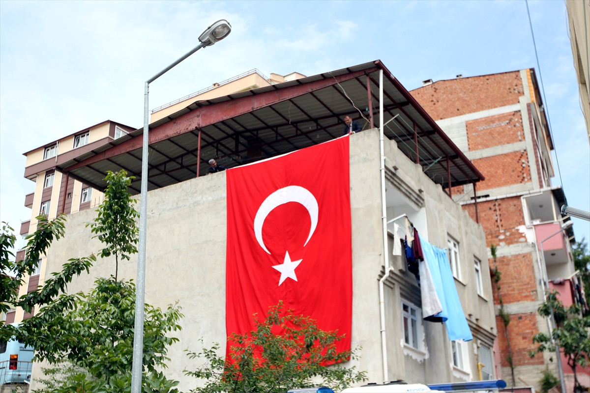 Gürpınar çiftinin üç çocuğundan en büyüğü olduğu belirtilen şehidin babaevine Türk bayrağı asıldı.