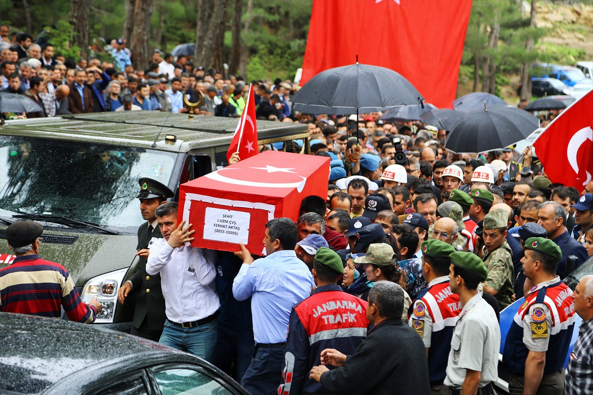 ADANA (AA) - Mardin'in Nusaybin ilçesinde PKK terör örgütü üyelerinin bombalı saldırısı sonucu şehit olan Jandarma Uzman Çavuş Ferhat Aktaş, memleketi Adana'nın Feke ilçesinde son yolculuğuna uğurlandı.