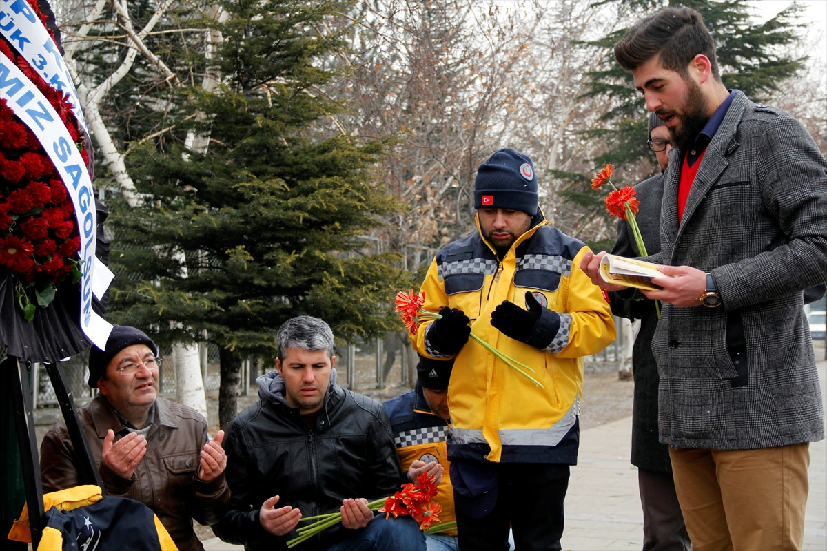 "Erciyes'in düzünde patlayan bomba, bir arkadaş önde, ikisi yanda, anam toz duman oldu ortalık burada, şehitlik anam bugün bize düştü" dizelerinin yer aldığı şiir, ziyaretçiler tarafından hüzünle okunuyor.
