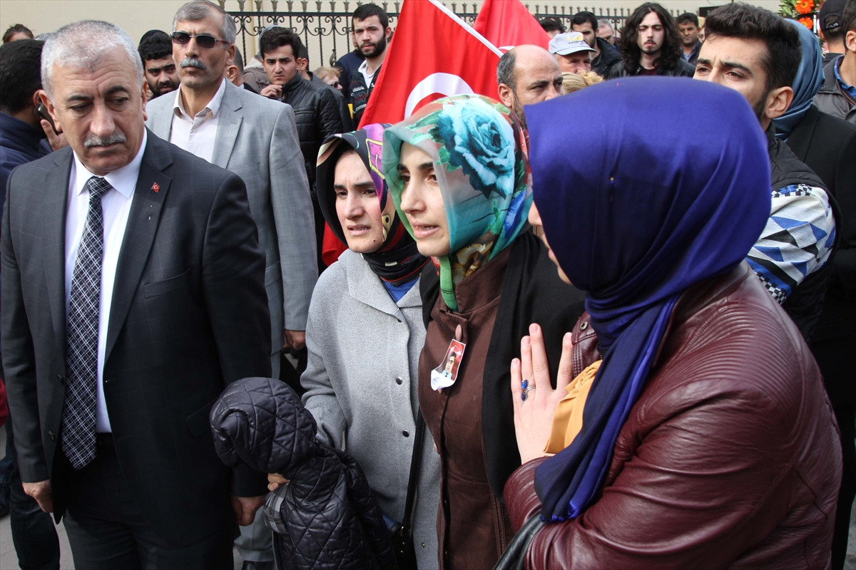 Şehit komiser yardımcısı Uçar'ın (33) Türk bayrağına sarılı tabutu, törenin yapılacağı Osmanlı Camisi avlusuna getirildi.