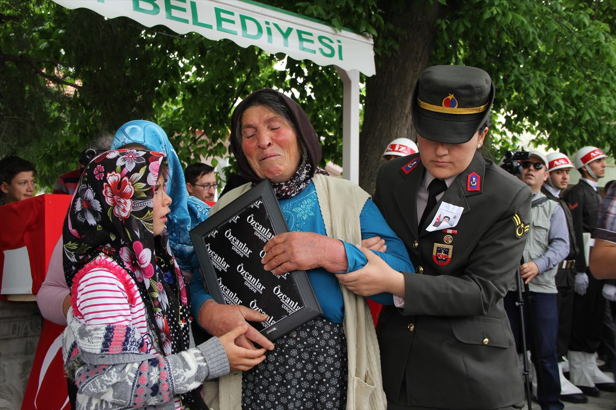 Burada şehidin annesi Havva, babası Mustafa, eşi Hacer ve10 yaşındaki kızı Dilara, tabuta sarılarak gözyaşı döktü.