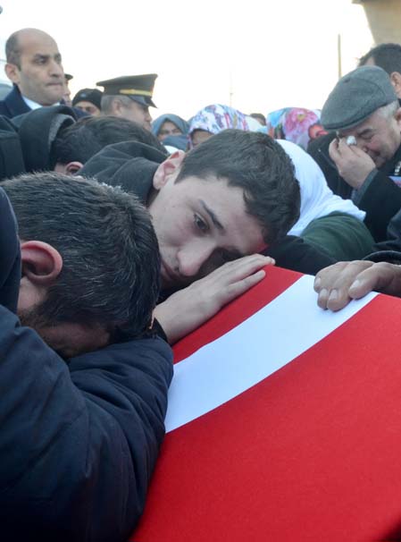 Askerlik görevini yaptığı birliğinden izin alarak gelen şehidin kardeşi Ferhat Olcay ise bir ara tabuta başını dayayarak ağladı.