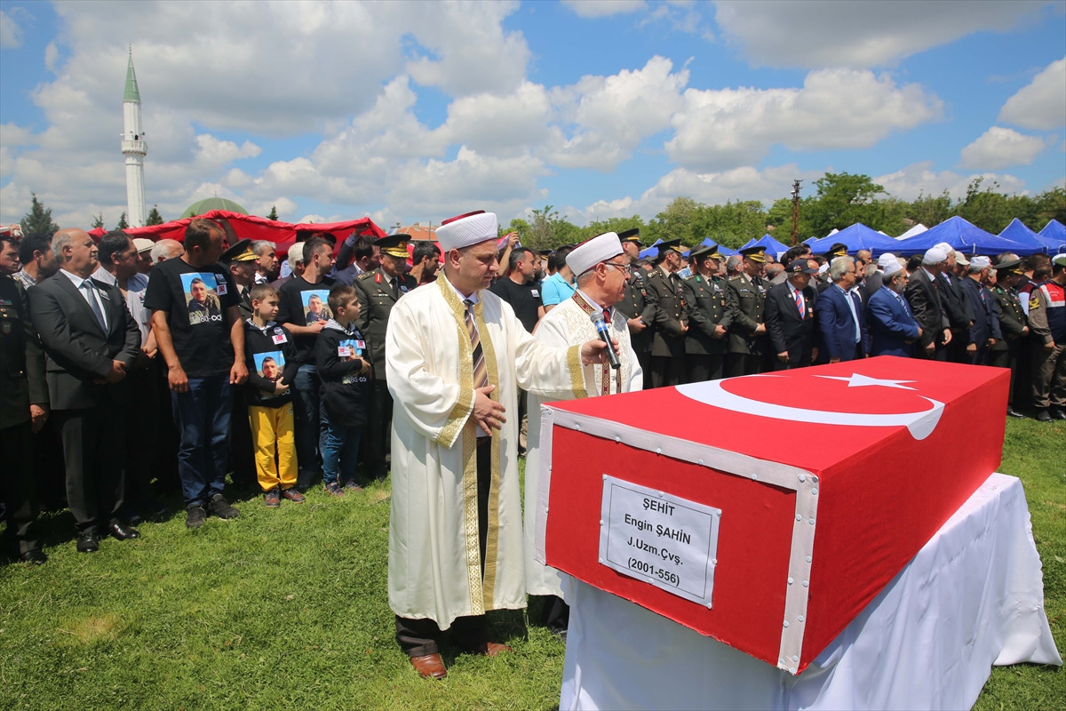 Mardin'in Nusaybin ilçesinde terör saldırısında şehit olan Jandarma Uzman Çavuş Engin Şahin (36), Edirne'de son yolculuğuna uğurlandı. Şahin'in cenazesi, helallik alınmak üzere Havsa ilçesine bağlı Necatiye köyündeki baba evine getirildi. Şehidin annesi Hatice, eşi Kıymet, kardeşleri Sezgin ve Bilgin tabuta sarılarak gözyaşı döktü. Zaman zaman fenalaşan şehidin eşi ve annesine sağlık ekipleri müdahale etti. Şehit Şahin'in Türk bayrağına sarılı tabutu, daha sonra askerlerin omuzlarında köy meydanında hazırlanan alana getirildi. Şehidin ailesi annesi ve eşi burada da tabuta sarılarak, gözyaşı döktü. Şehidin çocukları Ece Nur, Muhammet Emir ve Cengiz Emre de babalarının fotoğrafının basılı olduğu siyah tişörtlerle törene katıldı. Törene katılan çok sayıda vatandaş ellerinde Türk bayraklarıyla "Şehitler ölmez vatan bölünmez" sloganı attı. İl Müftüsü Yardımcısı Mehmet Altay'ın kıldırdığı cenaze namazının ardından bir süre omuzlarda taşınan şehidin naaşı, köy mezarlığında toprağa verildi. Törene Edirne Vali Vekili Beyazıt Tunç, AK Parti Edirne Milletvekili Rafet Sezen, CHP Edirne Milletvekili Erdin Bircan, 54. Mekanize Tugay Komutanı Tuğgeneral Hidayet Arı, kamu kurum ve kuruluşlarının temsilcileri, askeri yetkililer, şehidin silah arkadaşları ve çok sayıda vatandaş katıldı.