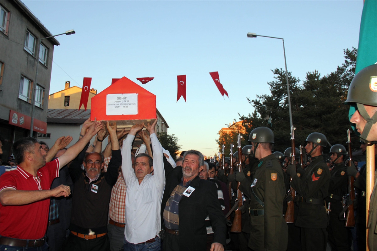 Çelik'in cenazesi, cenaze namazın ardından bir süre top arabasında taşındı daha sonra da tekbirler eşliğinde omuzlarda ilçe mezarlığına götürülerek toprağa verildi.
