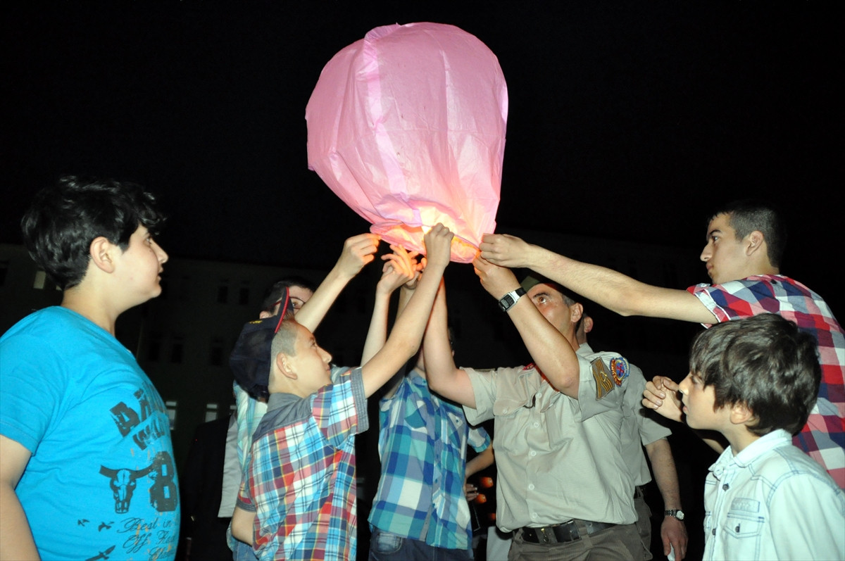İftar yemeği sonrası şehit ve gazilerin çocukları bir araya gelerek "bir daha şehit verilmemesi' dileğiyle dilek feneri uçurdu.